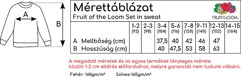 Szabása: hagyományos-divatos. Anyagösszetétel: 100% pamut. Anyagvastagsága: vastag (280 gr/m2). Bordás kötésű nyakkivágás, ujjvégek és derékrész elasztánnal, körkötött anyag.